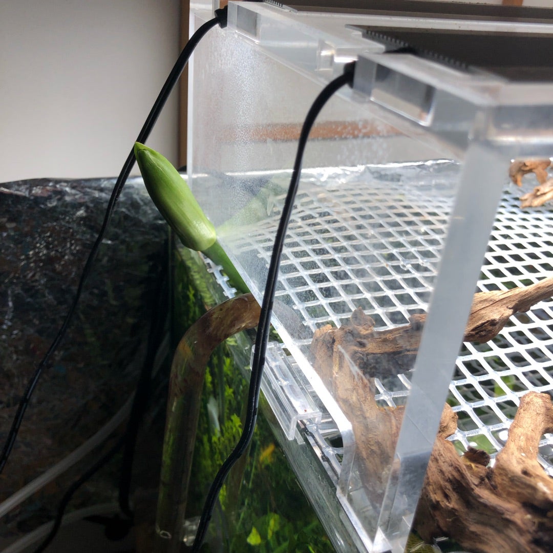 さて、クリナム・ナタンスという水草は、この時期花を咲かすようで、昨年に続き花茎ロケットが、水面を突破して水上で開花しました。