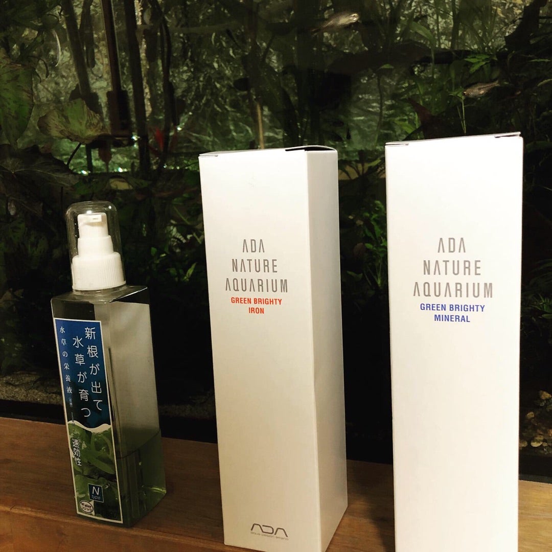 今まで、液肥の恩恵はあまり感じた事がなかったのですが、左端のが中々の効果を産みました(うーん、水草の育成具合が…というよりも、1週間でガラス面にコケがつき始めていたのが、2週間かそれ以上になりました。多分液肥を入れる事によって、コケに取られていた養分もろとも水草に摂取出来るようになったのでは??)ので、同じものを…と思ったけど、別のもんを試してみたくなったのであります。
