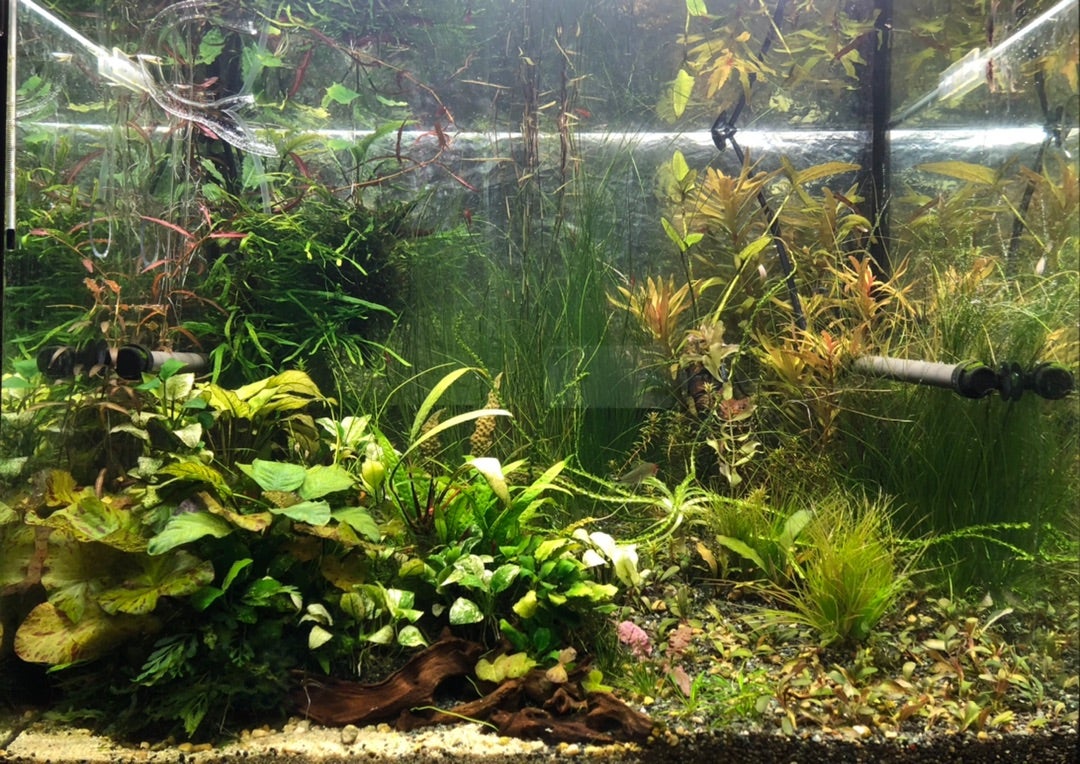 有茎草も、然程成長は早くない種類だけ残してますし、半分以上は成長の遅い陰性水草ですさかい、なるべくメンテをしないで良い方向への舵は既に切られている。