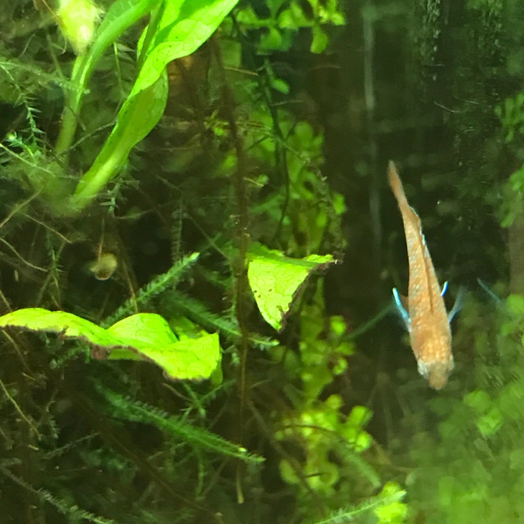 ちっこくて、草の陰にいるので、基本的にはあまり姿を現さず、ラムズの稚貝やゲジのちっこいのや、まー、ふつうに人工餌もパクついてます。